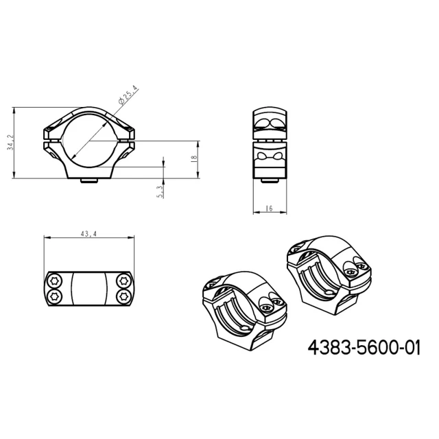 Scope rings for installation of any scope with matching diameter of the main tube.