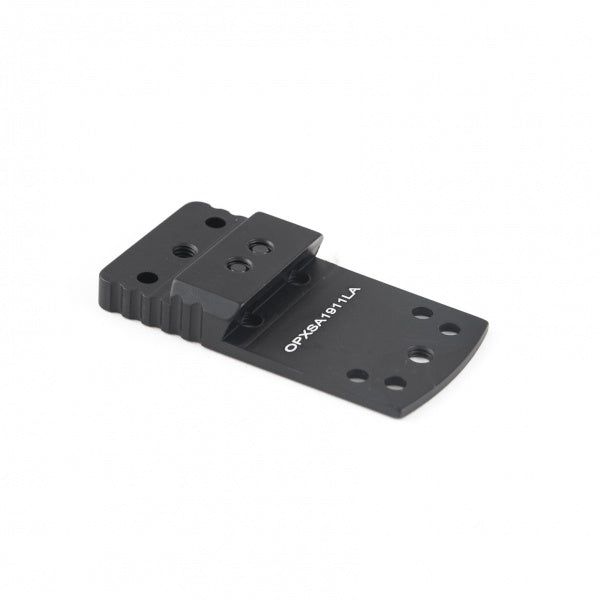 Installation of red dot mount is done by removing the rear sight and replacing it with the mount in the dovetail cut.