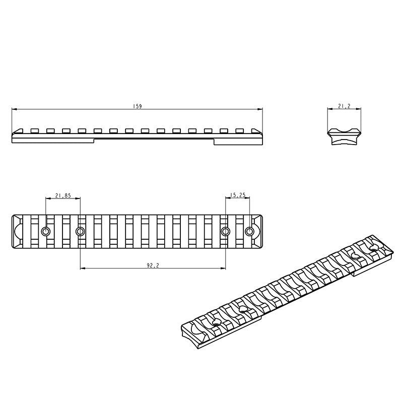 Picatinny rail [scope base] for installation of scope rings with Picatinny base.